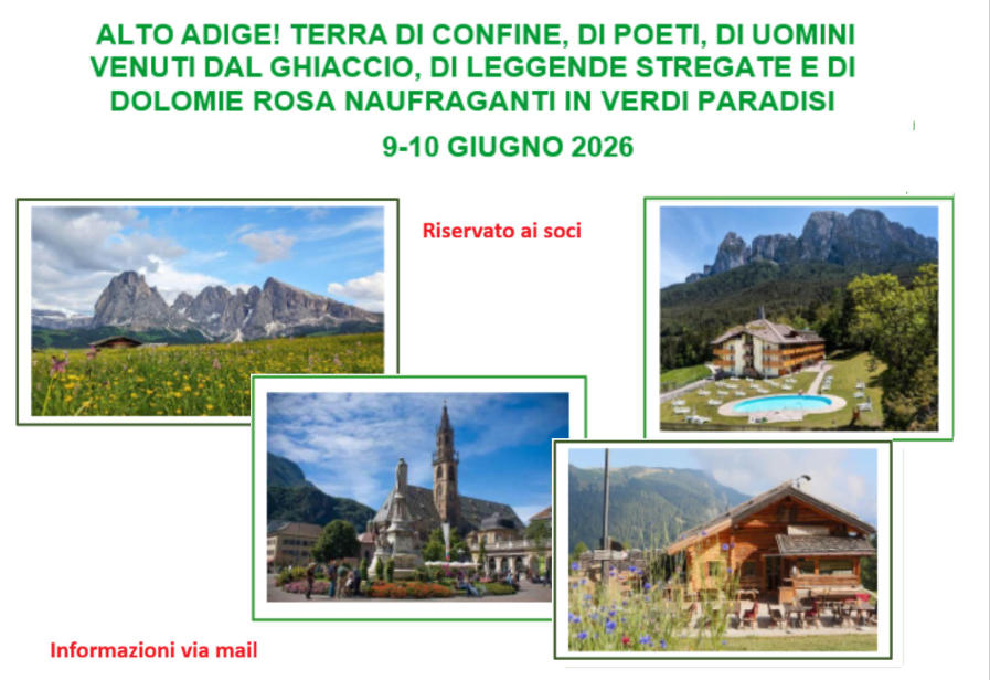 VIAGGI E VISITE GUIDATE : I viaggi e le visite guidate, organizzati e gestiti da Agenzie esterne, sono riservati agli associati regolarmente iscritti che riceveranno sulla propria mail il programma dettagliato e le eventuali variazioni delle visite a mostre di rilievo nazionale, viaggi in Italia, all’estero, in montagna e in luoghi vicini, di interesse culturale ed enogastronomico.
